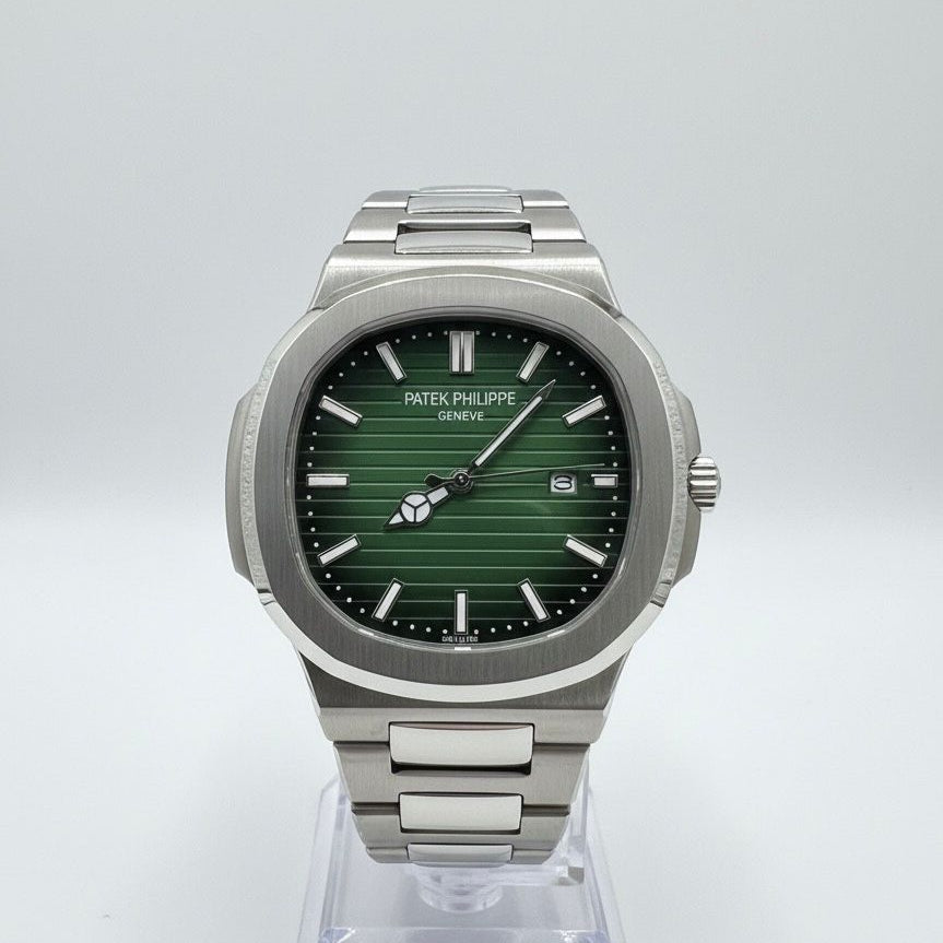 Effortless elegance with a contemporary edge — the PP Date Mate Case represents refined craftsmanship and modern design synergy. Crafted with precision, this timepiece blends Patek-inspired sophistication with a distinctive “Mate Case” finish for a soft, satin-metal texture that radiates quiet luxury.